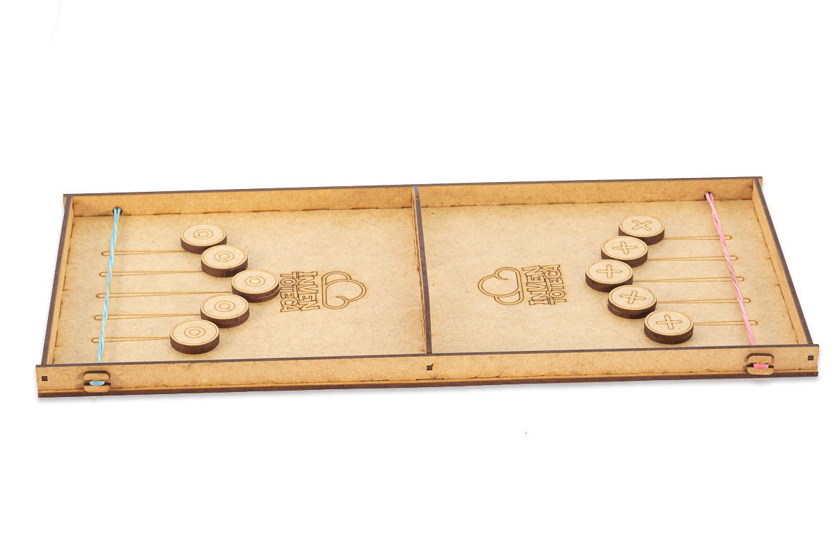 Para passar a bola para o lado do adversário, o jogador deve utilizar uma liguinha de borracha como ferramenta de propulsão e passar pelo meio da ponta que fica na metade do tabuleiro, entrando assim no campo do adversário.